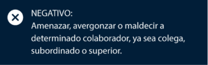 Todos deben ser tratados con respeto y dignidad. No se aceptan conductas físicas o verbales que sean humillantes para los demás, ni ningún acto o acción discriminatoria que interfiera con el desempeño funcional o que cree un ambiente de trabajo intimidante, abusivo, hostil u ofensivo.